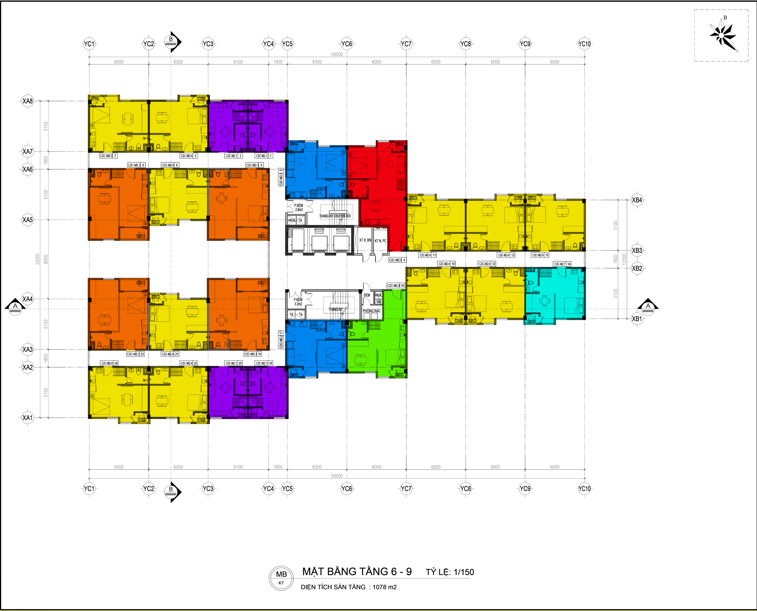 Loại căn hộ cao 3.3m (tầng 2-4): 66 căn